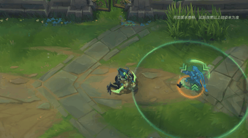 开启Q(1)技能时,卡兹克使用利爪劈砍目标对其造成伤害,目标周围会出现绿色半透明指引光圈。若此时目标孤立无援,伤害将增加100%。