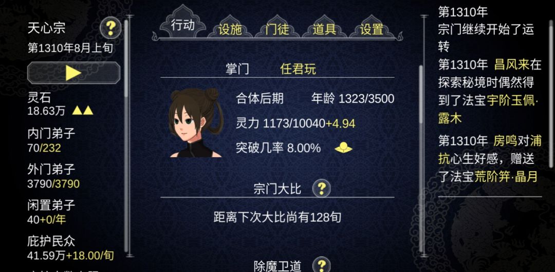 比别的修仙题材游戏有意思多了。四星好评,扣一星是因为疗伤丹也太坑了对高战力根本不顶用…等半天才上千,一用才回一点,给个好疗伤的呗。刚开始不会一周目中途弟子娶了一个合体大佬然后打过污秽之地,没给她疗伤然后唯一合体被魔修杀了,得了百万灵石也刷刷的掉下来,后来才明白原来是人要派位置…护山大阵没升…被魔修搞了两次玩不了了干脆直接二周目了,就舒服多了,问一下这个化形是个什么等级,宗门弟子也没这个人啊…