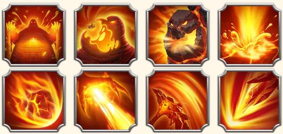 四名熔岩灵都会使用的技能,效果均为对前方扇形范围造成伤害,形态极为类似因此一起进行讲解: