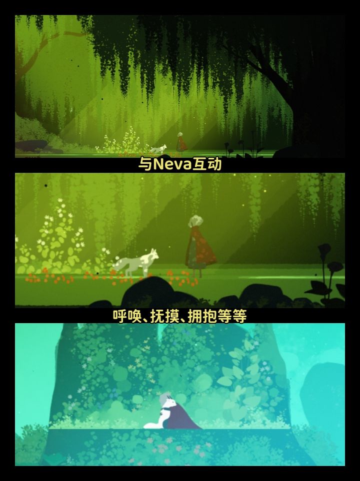 除了攻击、翻滚跳跃,还能与Neva进行互动