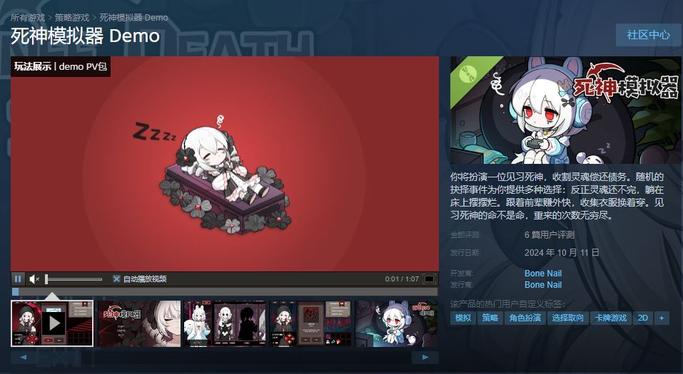 Steam搜索“死神模拟器”就好啦,免费试玩。手机端也在同步制作中,快的话今年就可以开启手游测试,喜欢的同学可以在steam和tap都关注一下,谢谢啦