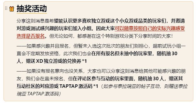 在XD独立游戏的社区内,有一个行踪神秘的组织。据说只要加入这个组织,不仅能够超前体验还未发售的游戏,还能在测试体验之余获得游戏的激活码,在游戏发售时成为最早一批喜加一的资深独立游戏玩家。当然,还有节日礼物等诸多福利自不必赘述……
