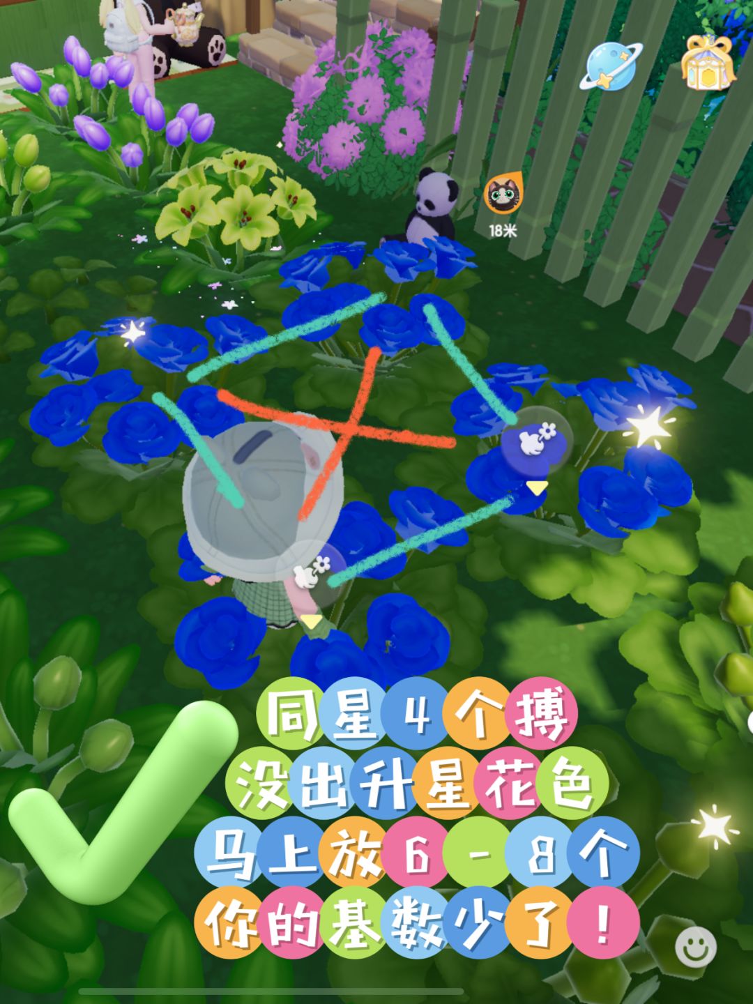 ❤️撒粉建议:这个时候如果撒繁育粉,不用省着就能全场撒粉,这样会杂交最多30朵以后多出来的粉在下一天继续用,省粉就可以撒30个,其实效果一样!