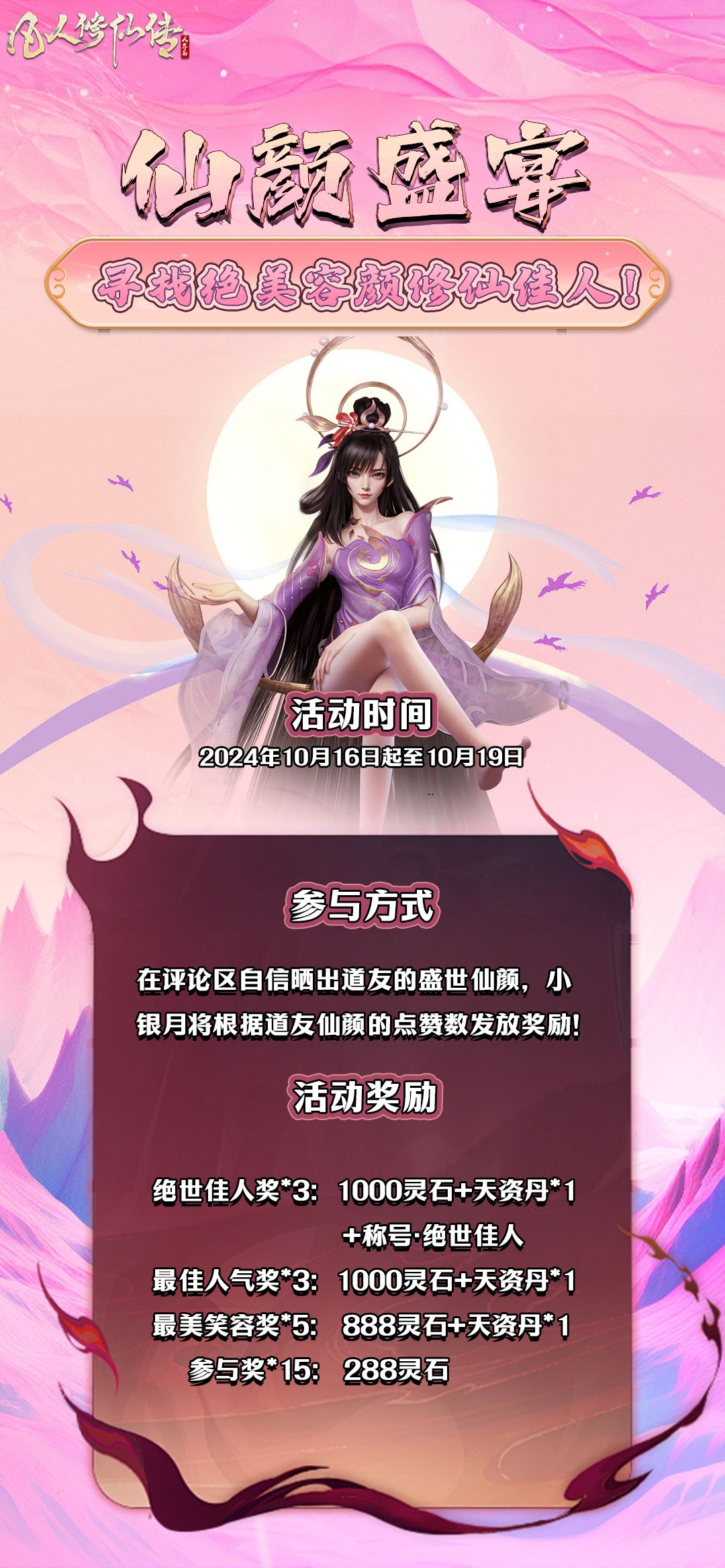 🌈 嘿,修仙界的颜值担当们,注意啦!小银月正在寻找最美的道友,不论是灵动如仙,还是俏皮可爱,只要道友自信出镜,就有机会成为凡修的“仙子佳人”!
