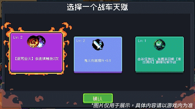 每次收服小鬼魂,战车都可从随机出现的三个天赋中选择一个进行解锁或对已经拥有的天赋进行升级。