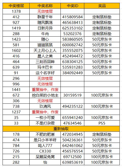 感谢各位玩家的热情参与,本次预约活动到此结束,以下是本次活动的中奖名单: