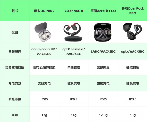 表现优秀:南卡OE PRO2、声阔AeroFit PRO表现良好:开石OpenRock PRO、Cleer ARC II