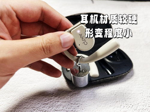 佩戴舒适度测试佩戴舒适度是选择耳机的重要考量因素之一。据我们调研所知,开放式耳机的佩戴舒适程度主要取决于三个方面,即耳机重量、材质以及结构设计。所以,本次测试将重点针对这三个方面的因素进行检测。这样可以为消费者在选择开放式耳机时提供更专业的参考,确保他们能够选购到佩戴舒适的耳机产品。测试结果南卡OE PRO2南卡这款耳机的佩戴舒适度非常高,耳机采用医疗级液体硅胶,摸起来很舒服,很柔软,耳机采用31°悬浮倾斜设计,戴起来不会有负担感,跑步时候如果不是放着歌的话很容易就忘记自己戴着耳机。佩戴的时间长了也不会产生什么不适感,哪怕对于我这种眼镜党也很友好,耳机和眼镜可以友好相处。