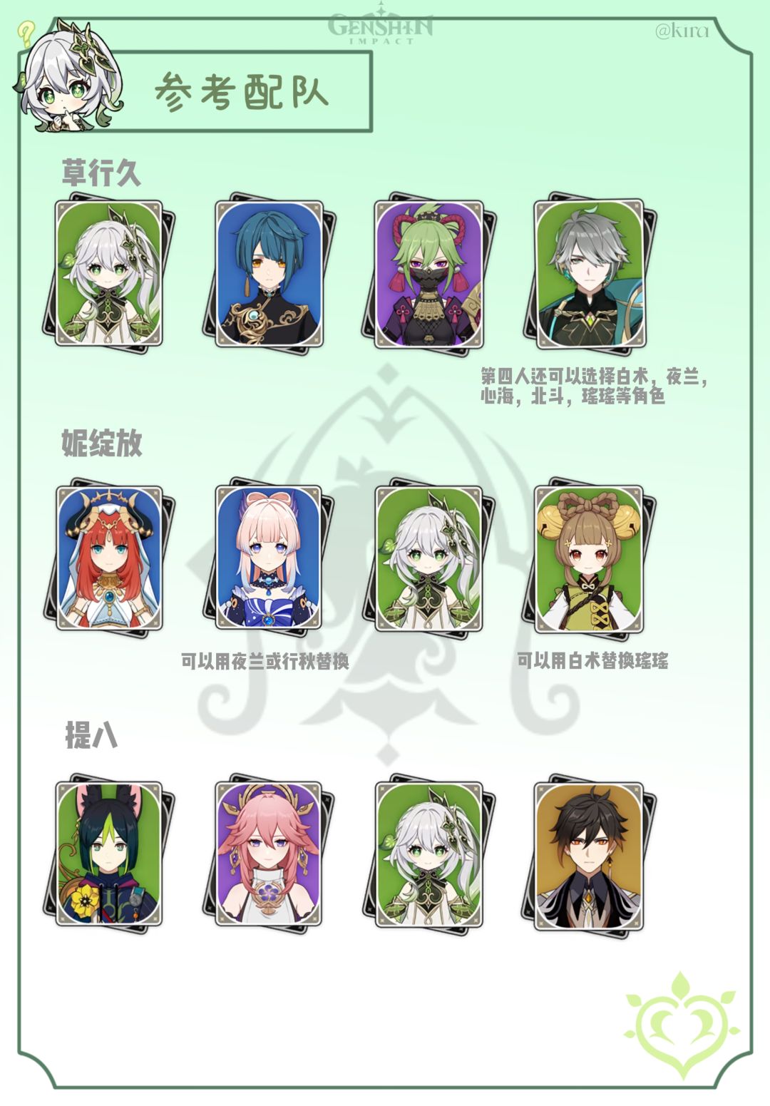草/雷主c+挂雷角色+纳西妲+盾/奶