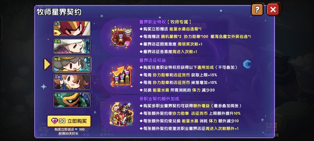 每个职业的星界契约独立存在(权益可叠加,职业专属特权除外)