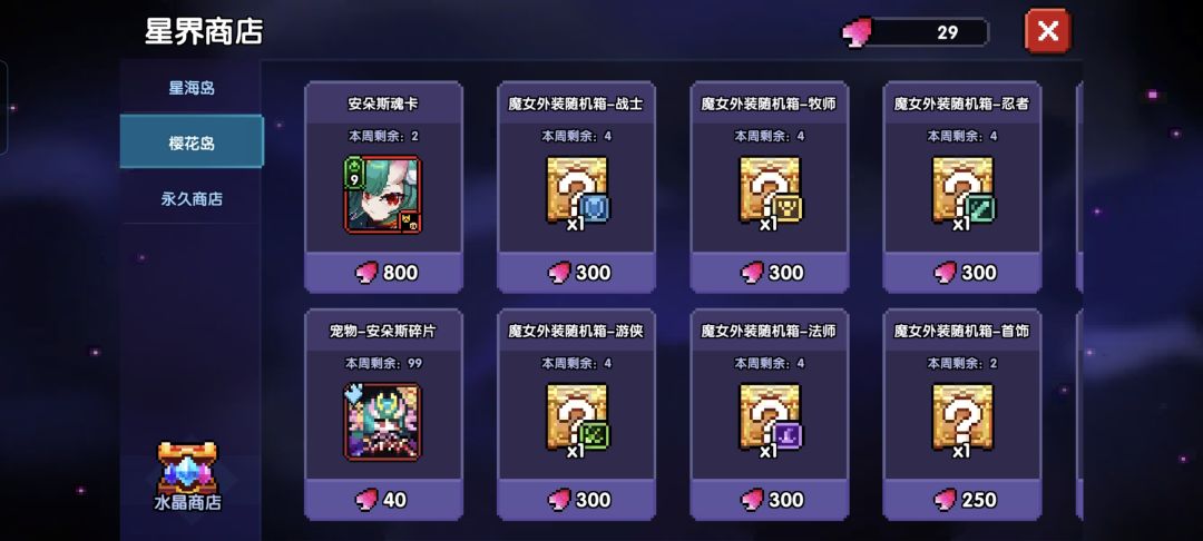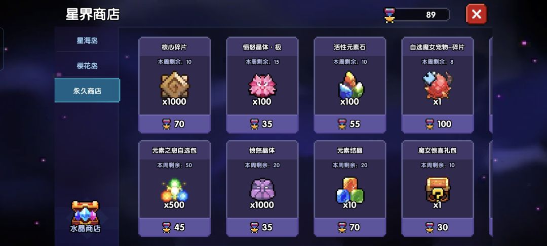 勇者们参加异界远征需要消耗能量水晶,能量水晶可在星界商店左下方的水晶商店中花费240体力换取(樱花岛和星海岛水晶均为240体力)