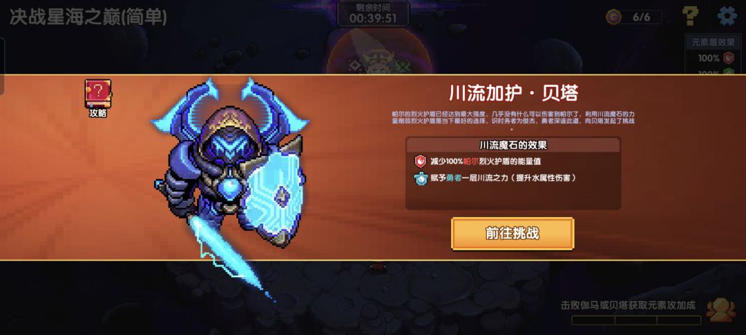 在星海岛中,最终boss存在免伤护盾,最好先击败能减少boss护盾能量值的小boss,优先选取减少百分比更多的击杀,如下图减100%,即为击败后最终boss不在免疫任何伤害(配置足够情况下,无需击败小boss,直接击杀最终boss即可)