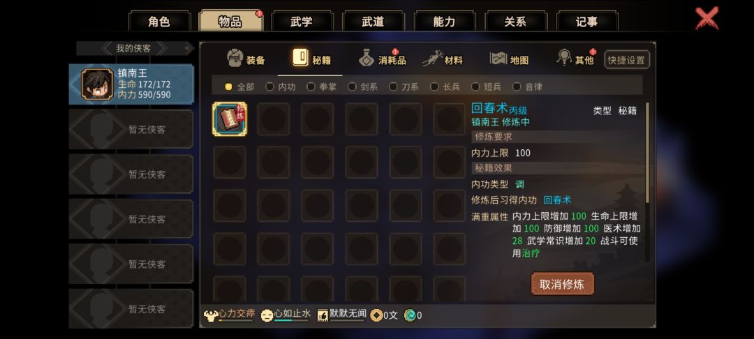 选回春术,其实有点浪费白头翁入队也会送一本。不过用起来舒服的。