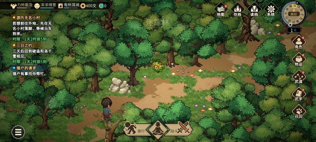 初探迷踪林,目标是一块野猪肉、方角、牡丹花和第一朵灵芝。记得装备醒狮吊牌