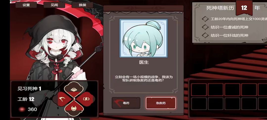 📱游戏背景:你将扮演一位小睡神,收割灵魂偿还债务。随机的抉择事件为你提供多种选择:反正灵魂还不完,躺在床上摆摆烂。跟着前辈赚外快,收集衣服换着穿。小睡神的命不是命,重来的次数无穷尽。