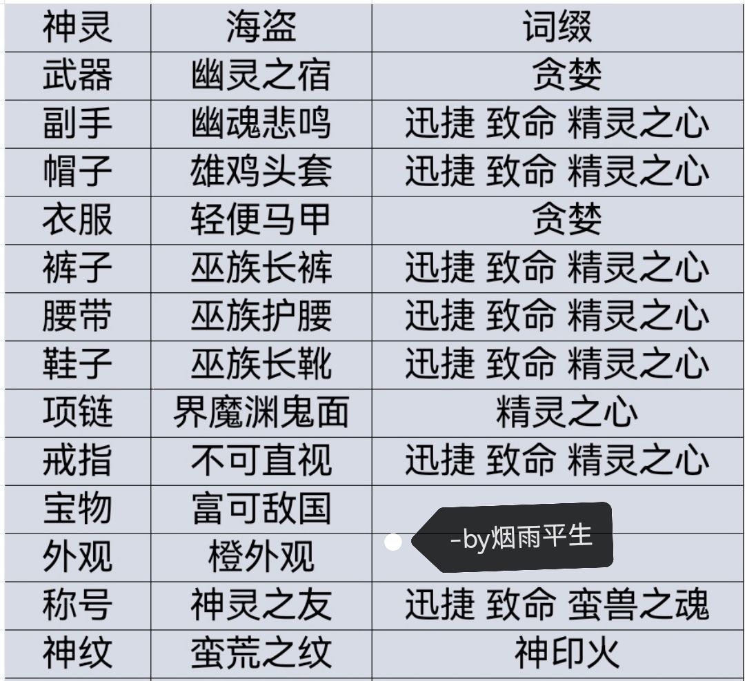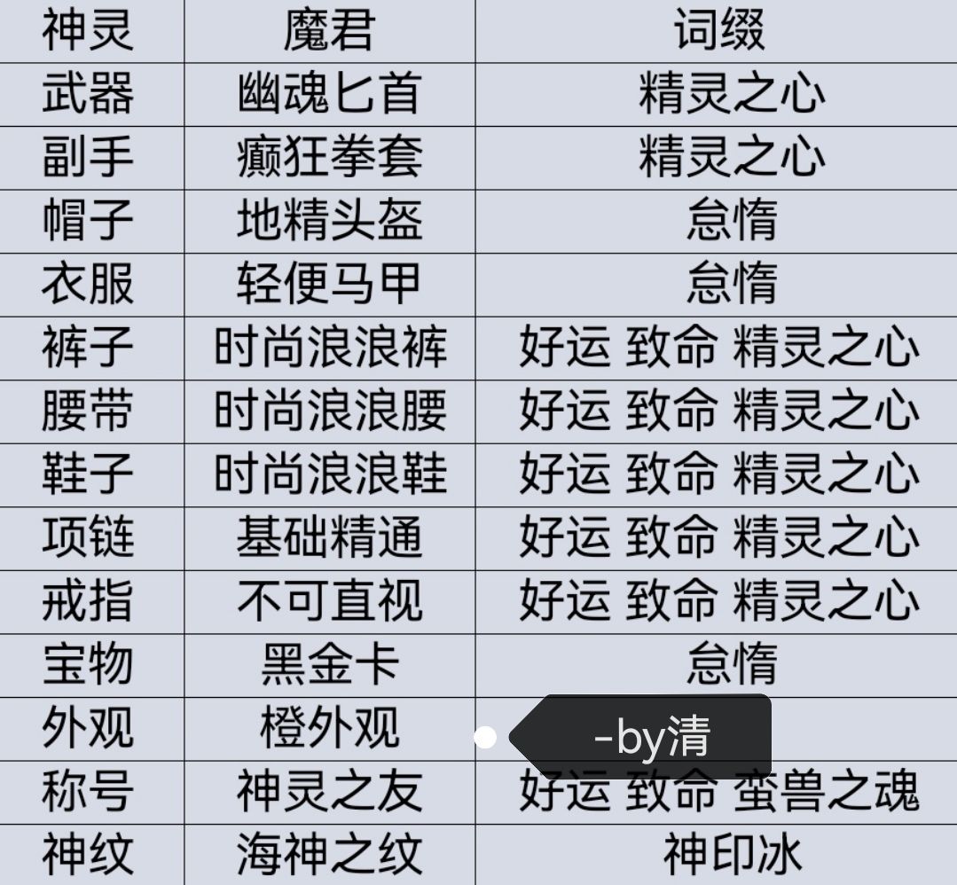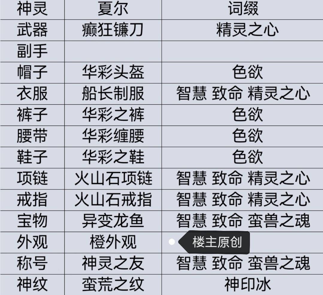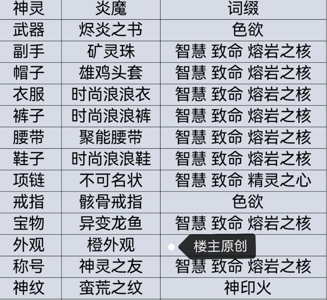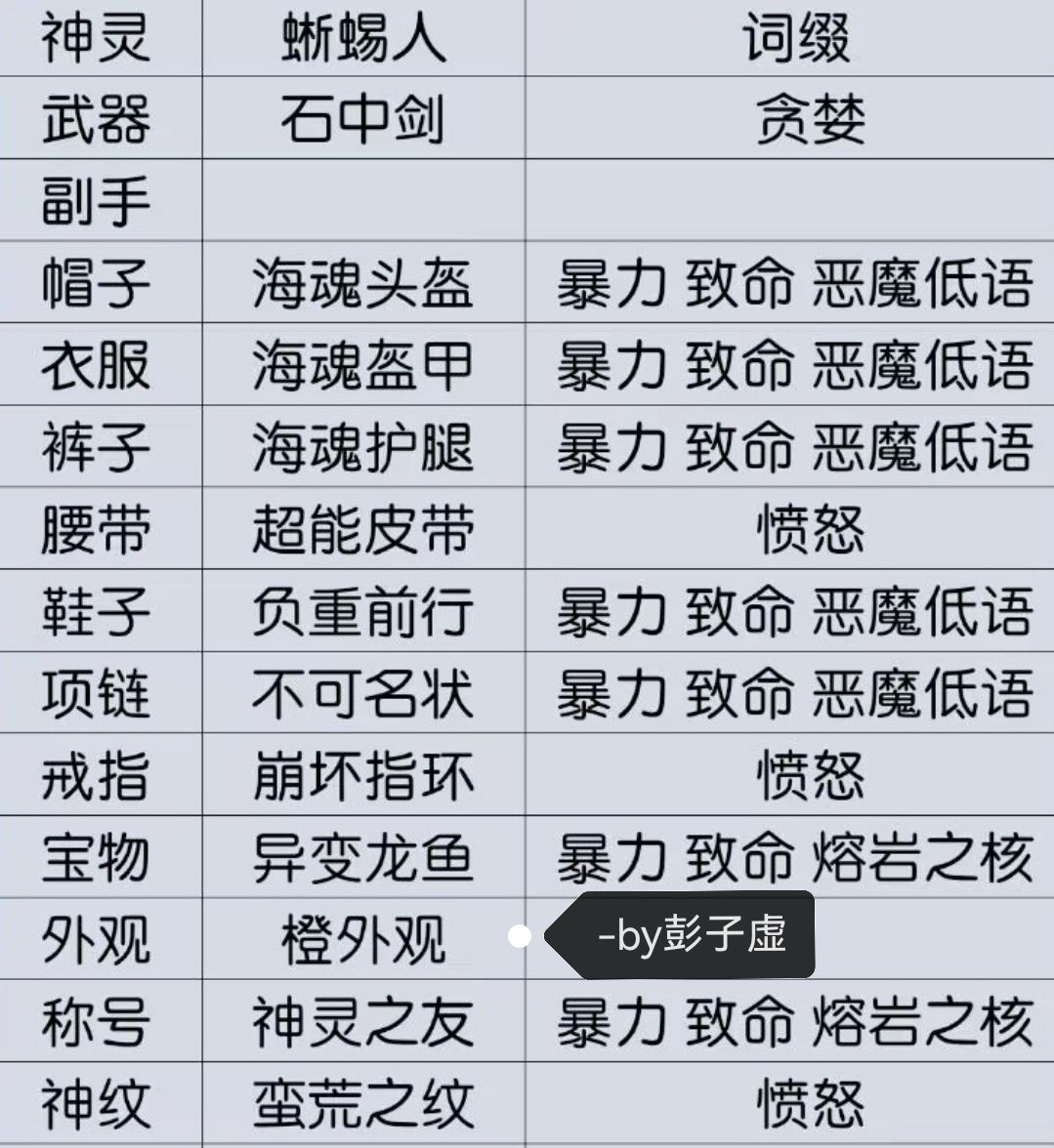 下列装备在1.4.0最主要变动就是把帽子换成万恶头盔,其他大部分调整不大。