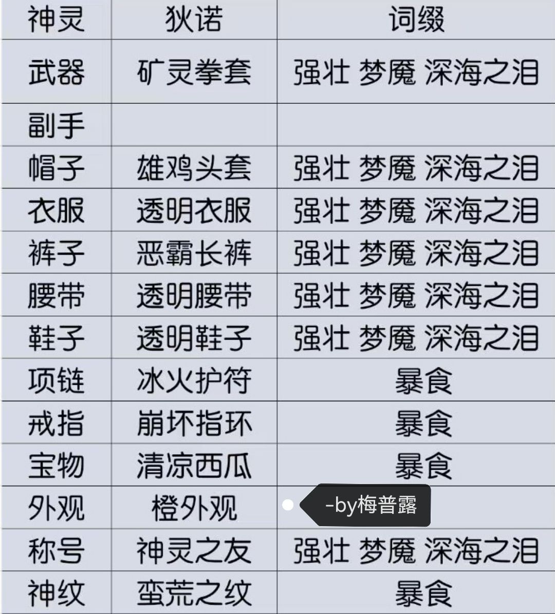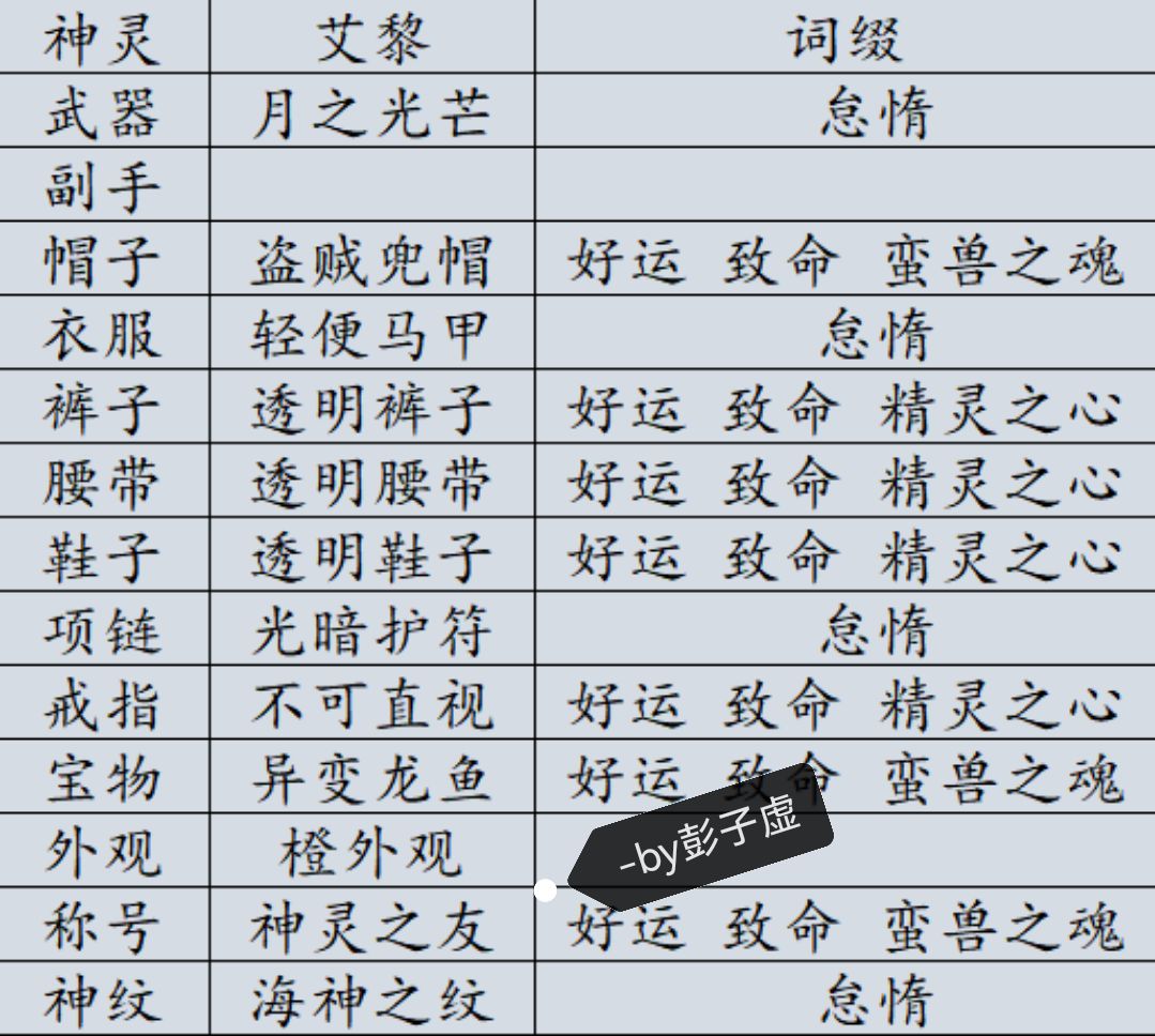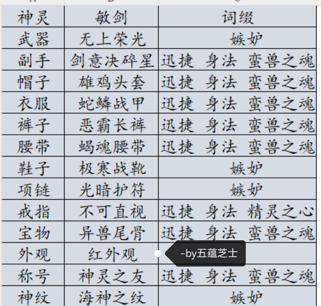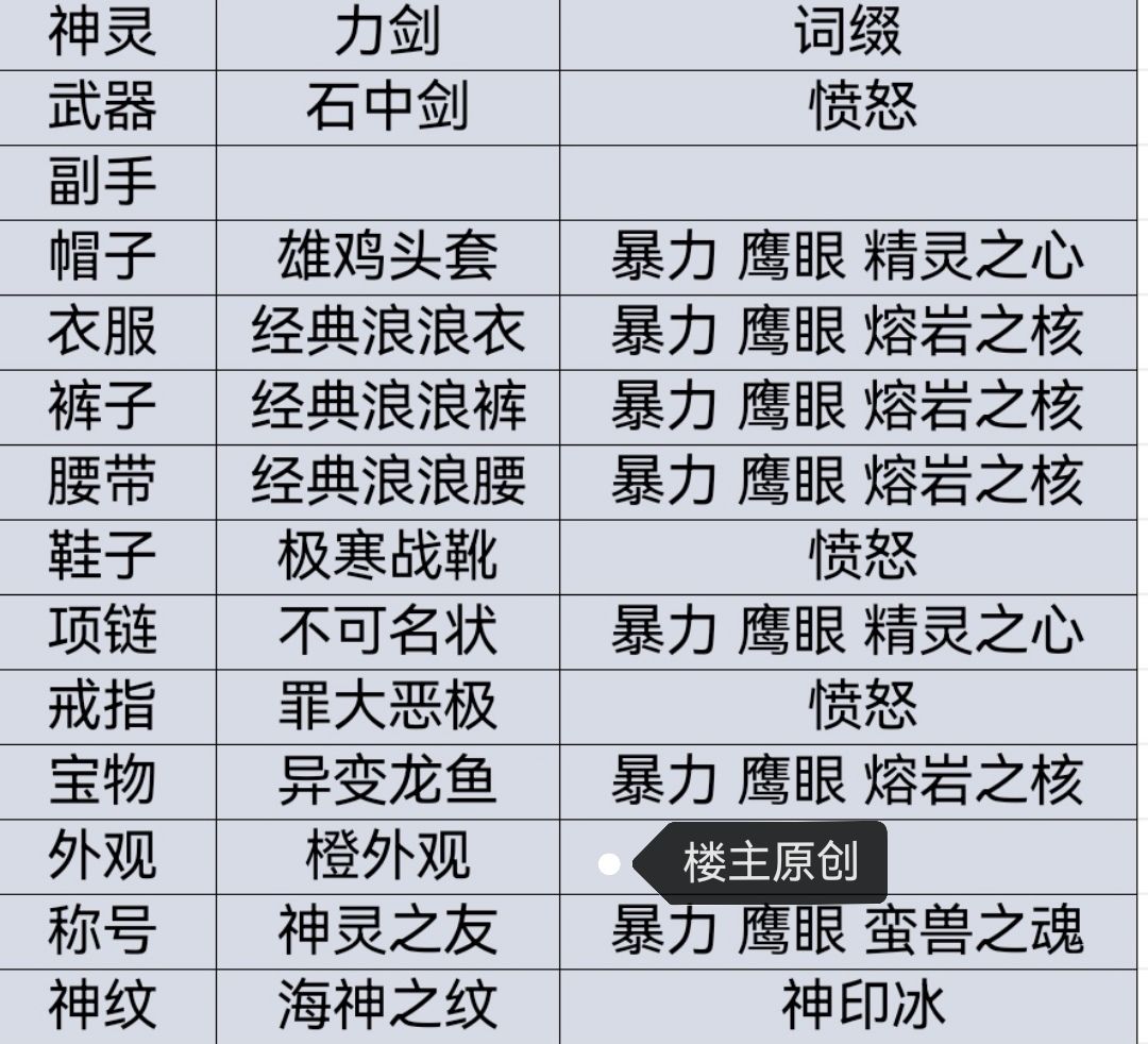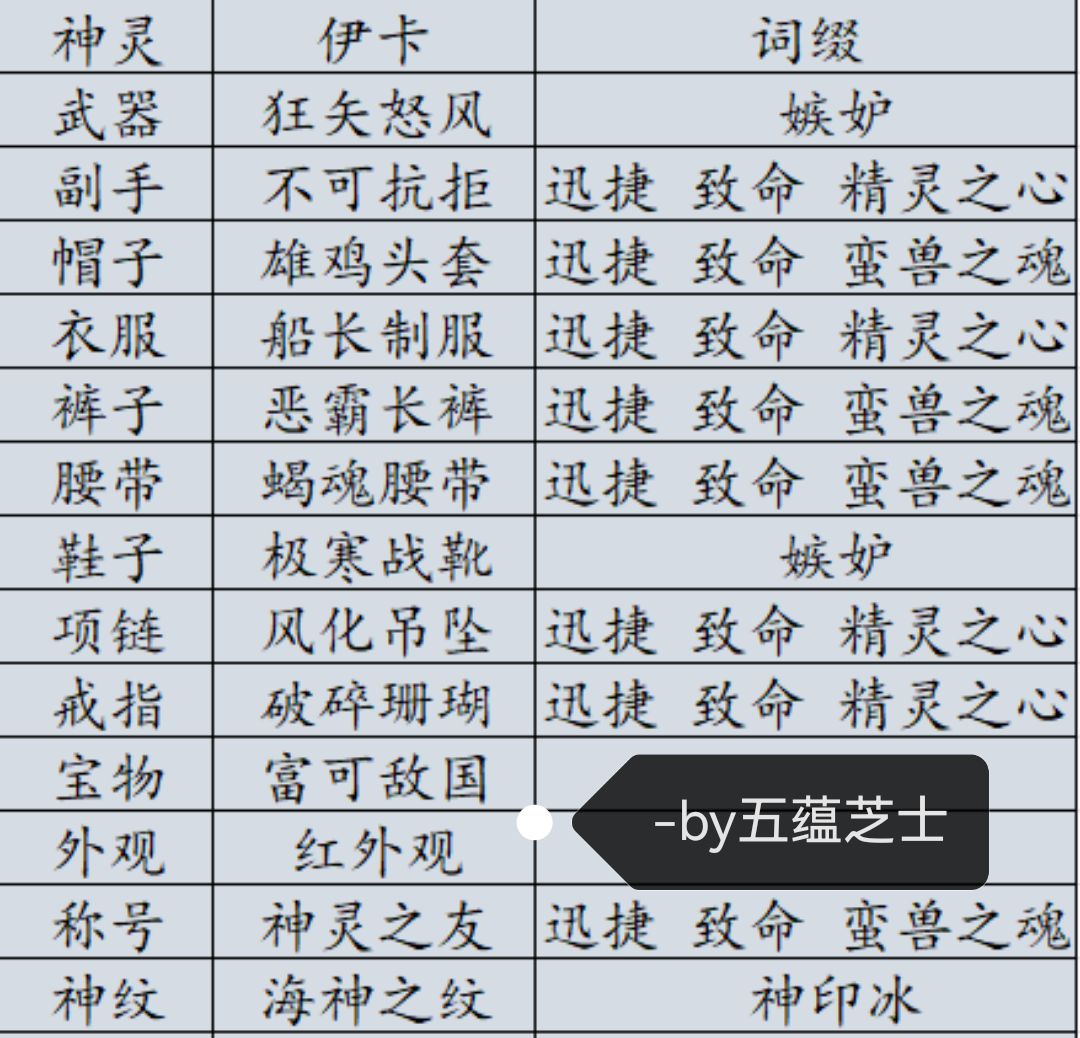 ps:装备图部分有调整,后续更新图片!