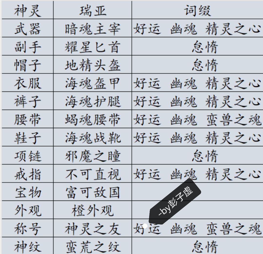 幸运之神(瑞亚)好运+幽魂/鹰眼+精灵;