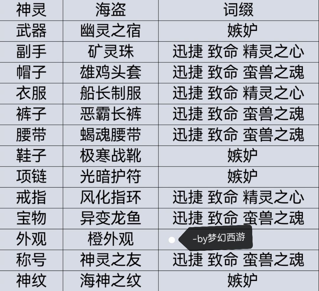 海盗(狗蛋)迅捷/好运+致命/鹰眼+精灵;