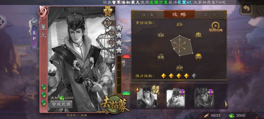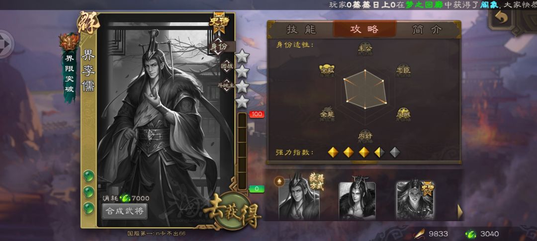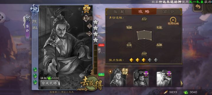 孙策我本以为是等级给的,但是很多队友有邓艾没孙策,应该是我当初招募的,也可能是活动什么给的,如果可以合成,建议也合成一下。