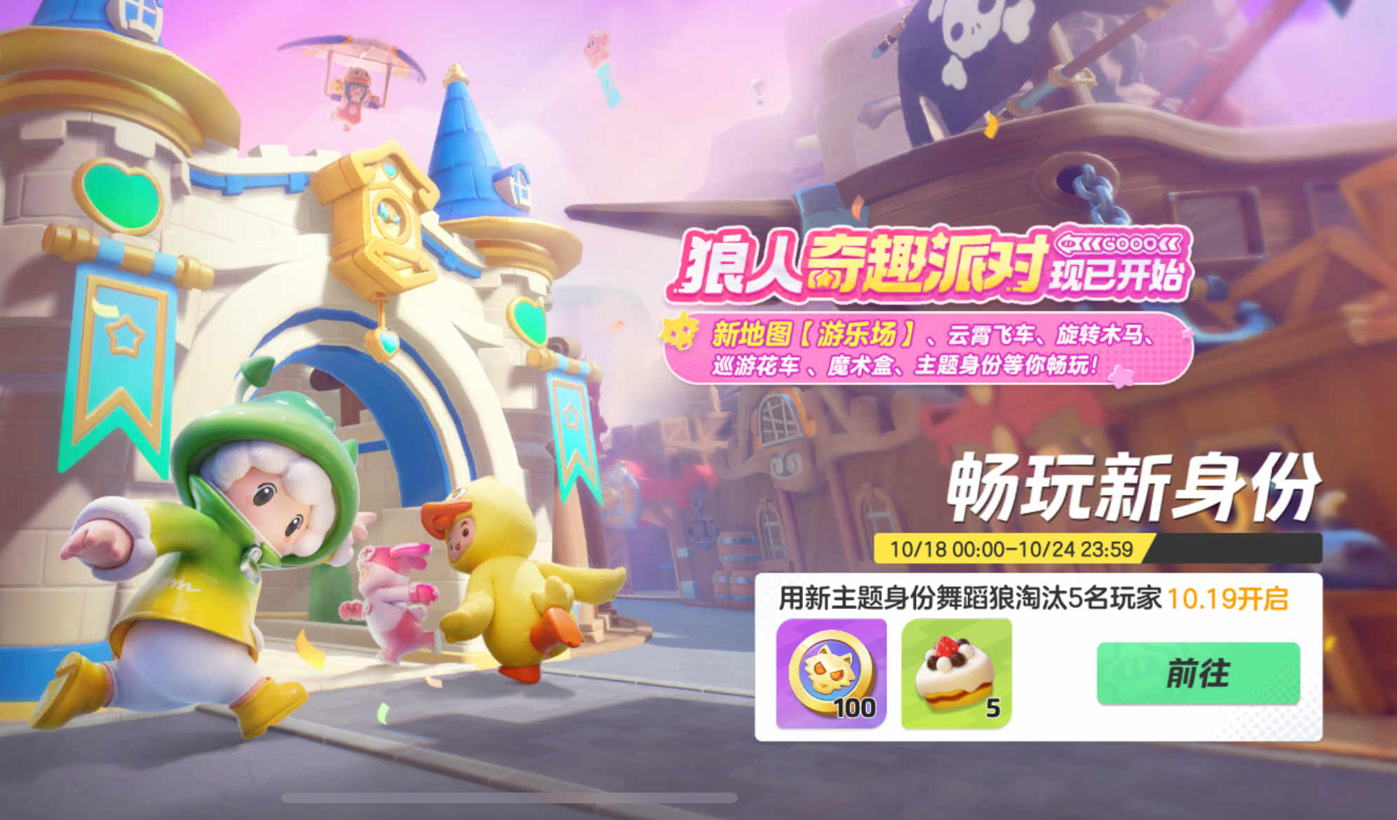 狼人奇趣派对即将开启!10月19日—10月24日,新赛季首次推出诸多主题身份,星宝们畅玩狼人新身份,完成相应活动即可获得狼人币*100、互动道具 丢蛋糕*5。