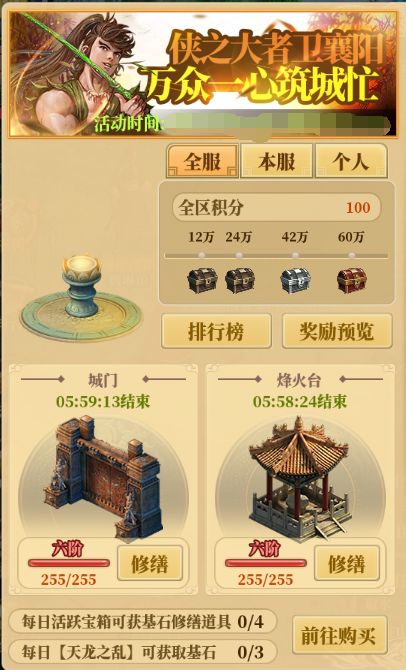 活动入口:点击活动界面-守卫襄阳或游戏右上角的守卫襄阳宣传图均可进入到活动界面;