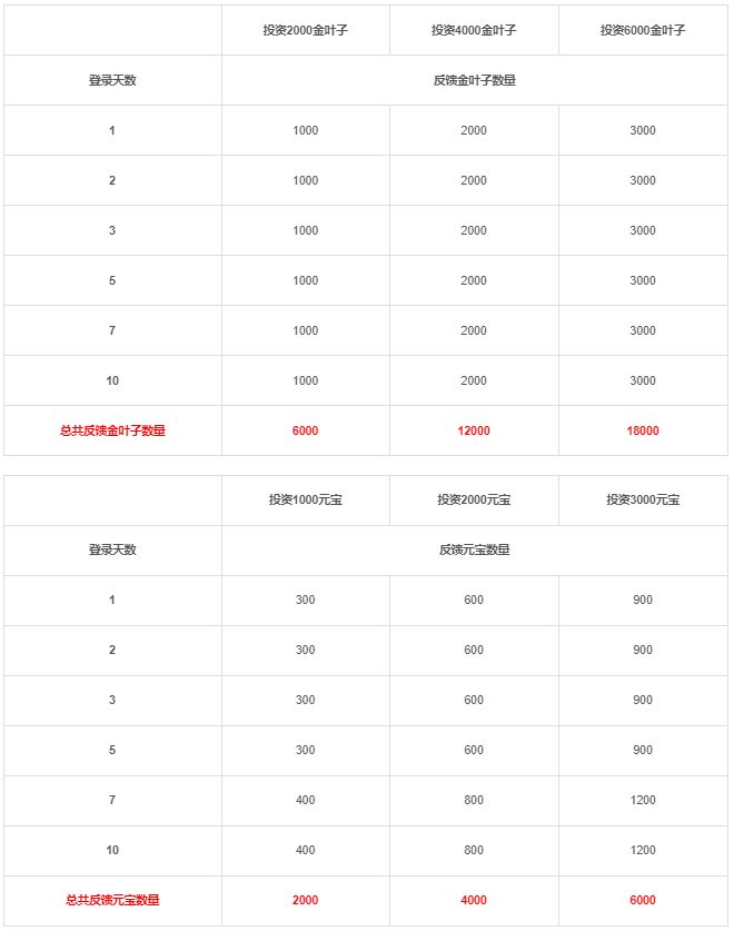 金叶子和元宝分别可以投资一次,选择后不可更改。