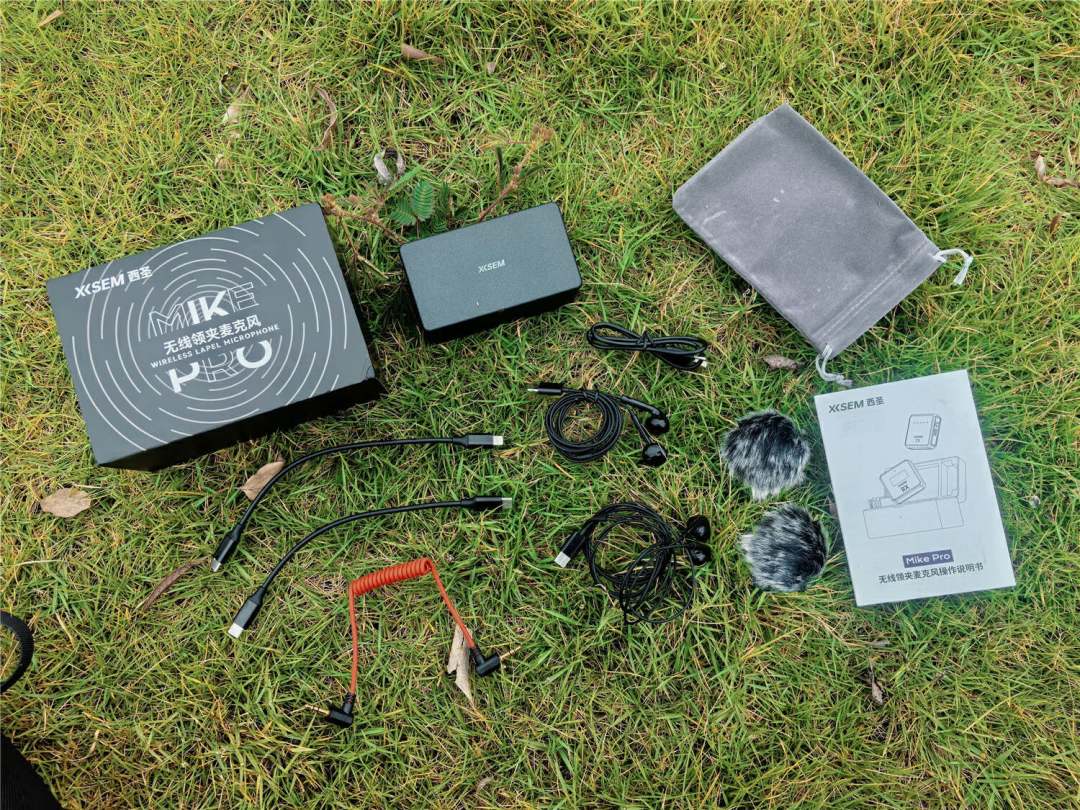 一、支持性兼容全面配件的支持是否全面,是一件产品比较核心的一环,西圣Mike Pro所配带的支持性配件相当齐全。除了麦克风的主要部分(充电仓、一个接收器和两枚收音麦克风)。其配件包括两只专业的防风罩、充电线、两副监听耳机、相机转接线、专用的苹果手机转接线、C口转接线、收纳包以及使用说明书,可以说是完美兼容支持时下的主流摄影设备、手机、电脑及各类多媒体设备。
