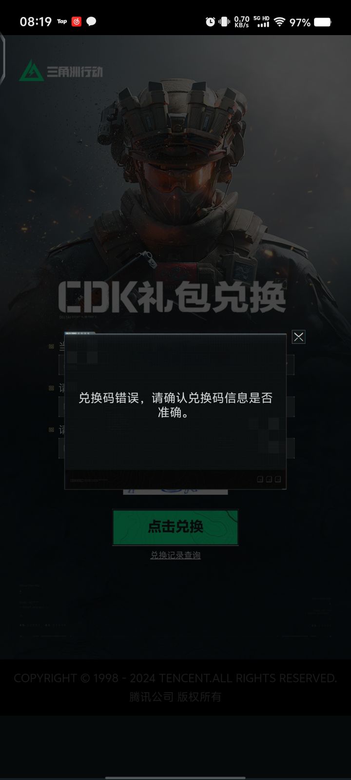 为什么签到活动那个枪皮礼包给的兑换码,兑换的时候显示兑换码错误,我已经试过了,直接复制和手动输入了