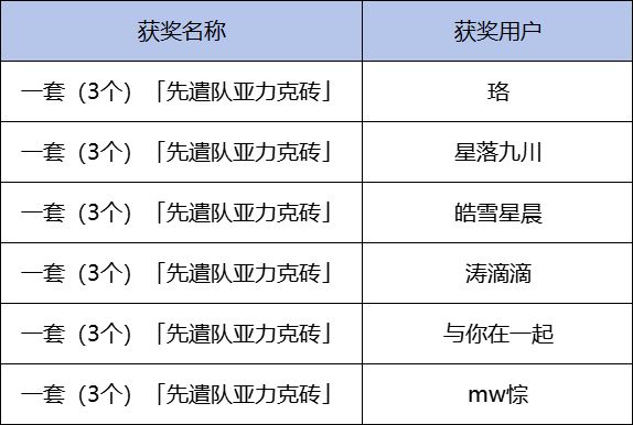 台词点赞量前3位的向导,获得一套(3个)「先遣队亚力克砖」
