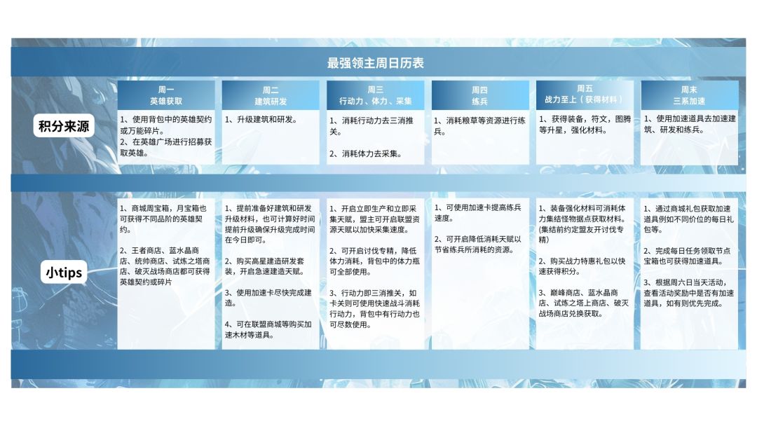 【玩家分享】最强领主周活动日历表,每天应做Get~