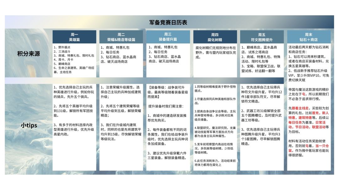 【玩家分享】军备周活动日历表,每天该做什么一目了然~