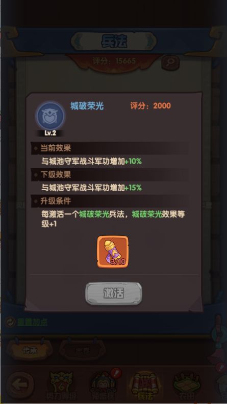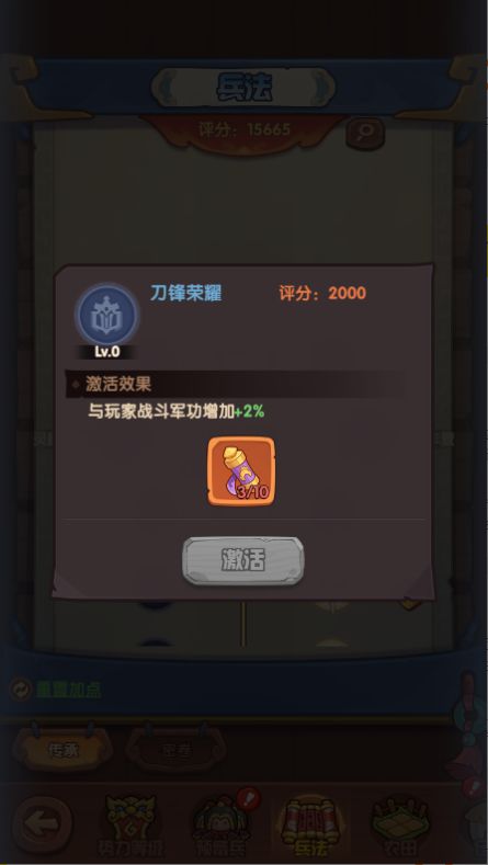 军功:点城破荣光增加刷城收益,先去刷npc,等后续转进攻其他阵营主公时再重置,专精点刀锋荣耀,让pve和pvp享受到加成。
