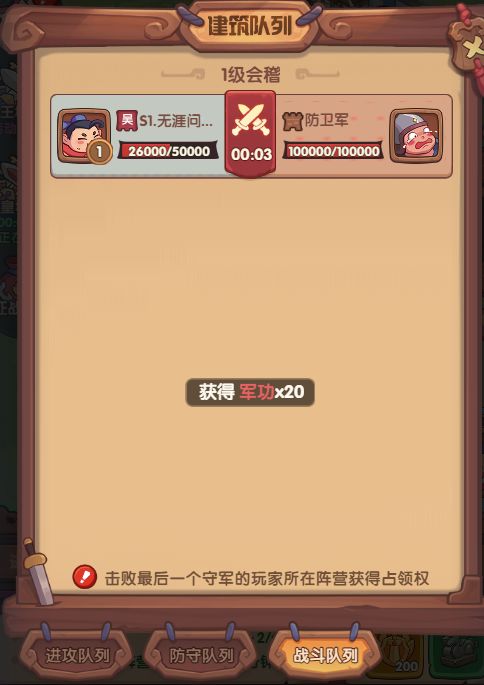 当进攻npc到兵力剩20000左右,去选个其他阵营的主公发起进攻,最后这点血获得的军功收益会更高。