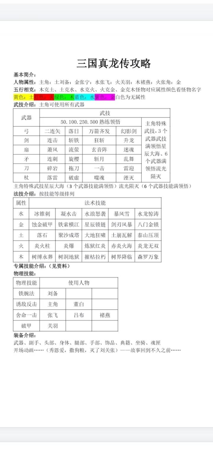 人物属性:主角:土 刘备:金 张宁:水 张飞:火 关羽:木 褚燕:火 张角:金