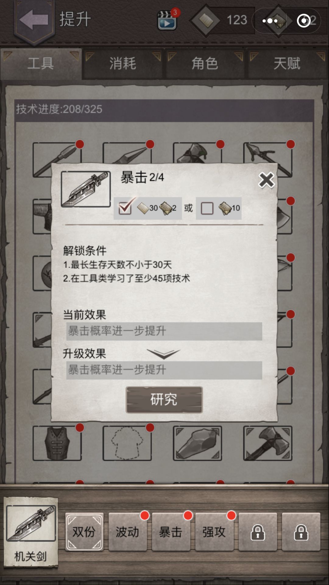 我没有升波动,强攻和暴击也才升两级(因为我最近刚开始玩机关剑),这伤害就已经很可以了。