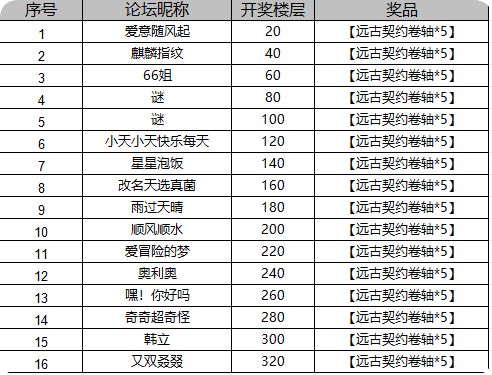*普通奖:活动截止时每20层,额外赠送1份游戏礼包【远古契约卷轴*5】*