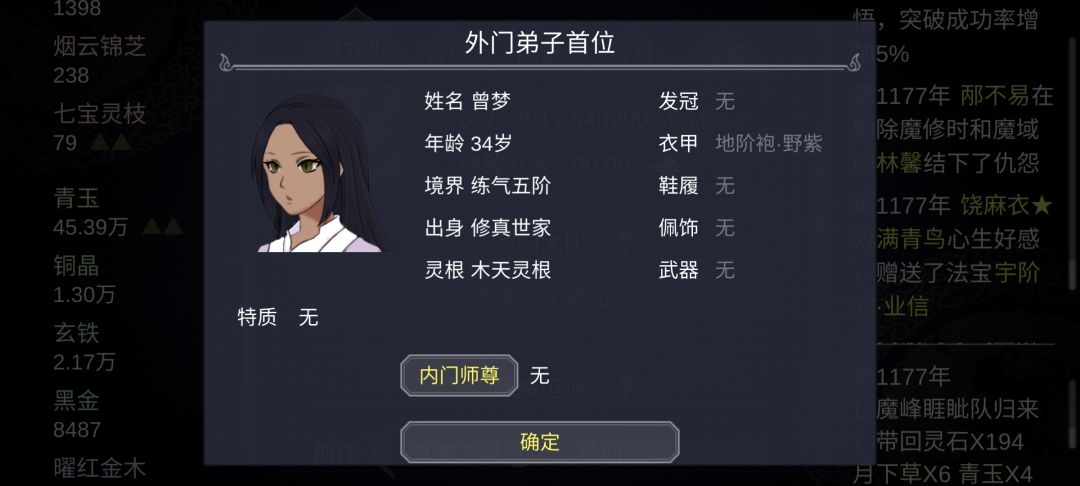 比武大选时骗装备法:大选时把掌门身上品阶最好的装备收回来当奖励,这样一是能得到更好的灵根弟子,二是弟子有机率身上自带同等品阶装备,这样就收回弟子装备,然后喂弟子几个筑基丹。装备就1变2了哦