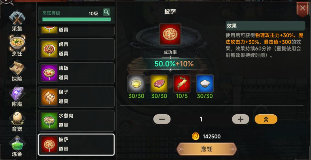 旅行者可以消耗食材烹饪食物,我不喜欢做,但我喜欢吃!烹饪食物有成功概率,可不要专门拿失败的菜肴给我吃!虽然这样也可以获得BUFF加成,但我只吃美味的食物!旅行者吃掉背包里的食物会获得对应的BUFF加成!不同的食物有不同的BUFF加成哦!