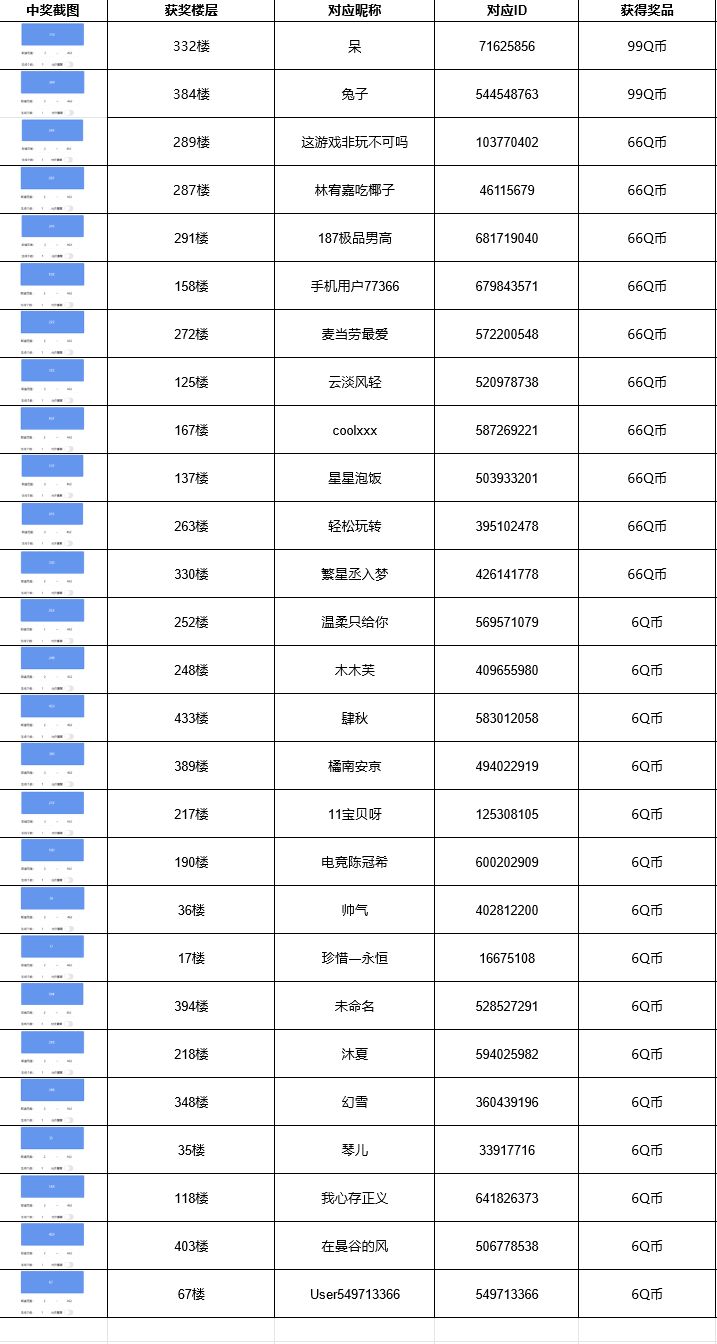 活动截至时有效楼层为2-462楼,经随机数抽取获取获奖楼层和名单如下: