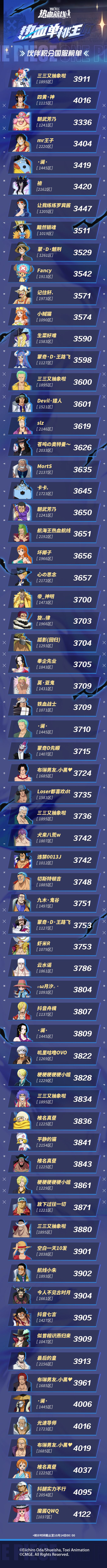热血单挑战斗收场,伙伴积分国服榜单出炉!在新的比赛机制下,这次都有哪些船长能荣登“最强”宝座?