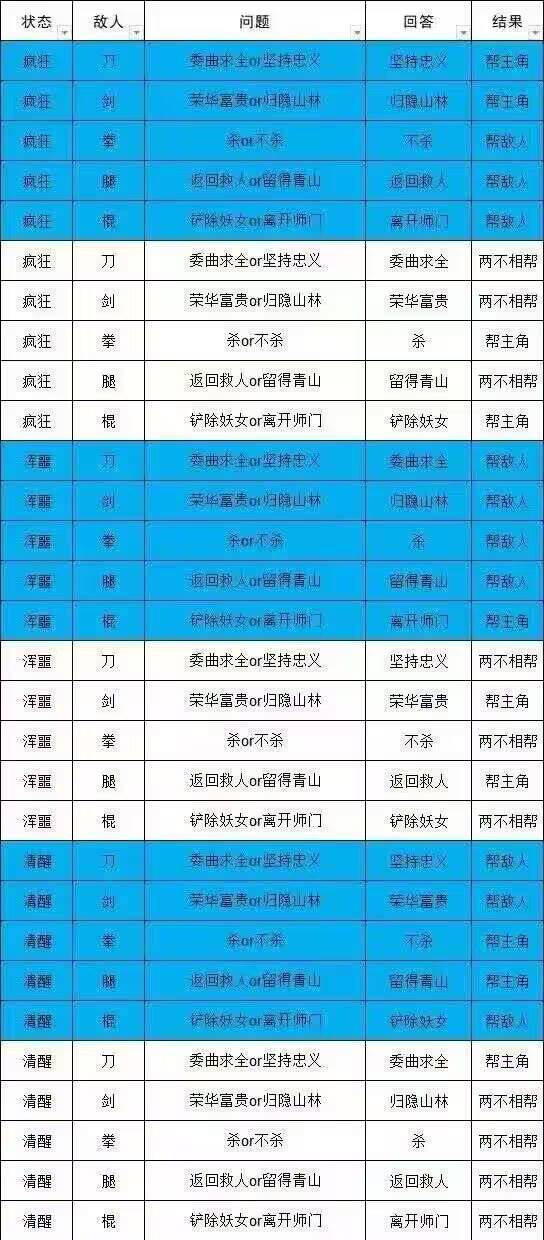 其次五人组是有对应的答案可以来选择,打腿的时候我是不想让裴万仰来帮我,所以能在对面就在对面,不在对面就两不相帮,因为腿子有迷影闪避这个反击,枪必中只有一个鬼魅技能;让裴万仰来帮主角纯属就是帮倒忙,索性不如不帮,其他的就都是按照下面图片来回答。