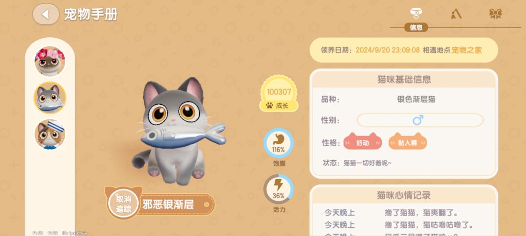 1关于猫咪的性格,目前第一性格对猫咪影响最大。猜测第二性格要达到一定成长值才会触发。例如不理人+好动的猫。主要显性的就是不理人这一性格。那么性格有什么影响呢目前只发现以下几种