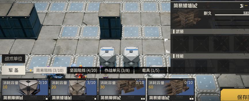 地利人和,光有机师怎能抵抗敌人的攻击,还需要战备的配合,阵地部署中提供了大量可供使用的战备单位,包括墙体、载具、炮台、信号塔、地雷、机兵等等。每种单位都有容量和数量限制,需要合理搭配,以便构造出最强防御。下面我们来简单说明下几种单位的不同。