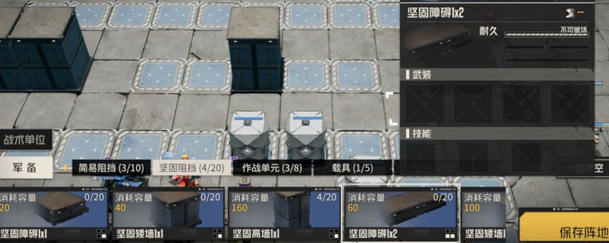 坚固阻挡:墙体,与简易阻挡的区别在于,非常坚固,不可被敌人破坏