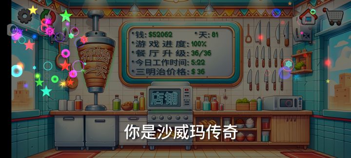 开局直接橙汁,然后开烤炉,再升级削土豆速度,再开饮料机,再升削沙威玛速度。如果刚开始玩不建议这样,真的特别累,我是为了试试我自己的极限,想速通一次罢了