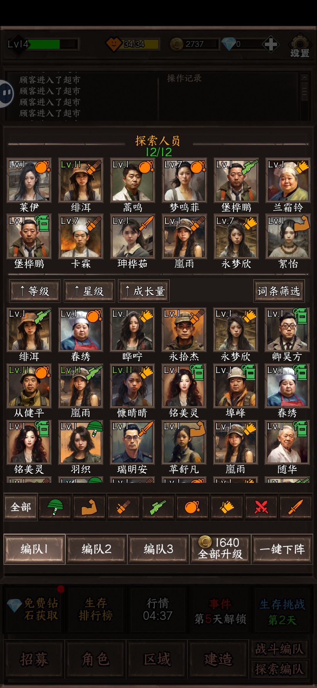 3.在超市页面的探索编队与探索区域的探索编队不一致,图四和图五,我检查了一下可能是因为我先进行的探索编队然后才是战斗编队,但是上阵的时候不会显示有哪些人员在探索编队里面,结果战斗编队把探索里面那几个算是锁住了吧,不能去探索了