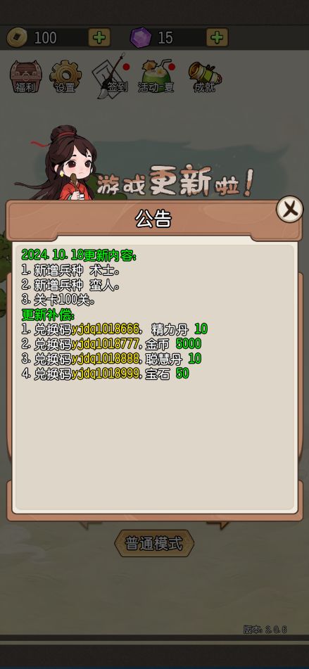 新增兵种,以及关卡上限等相关配置的更新。