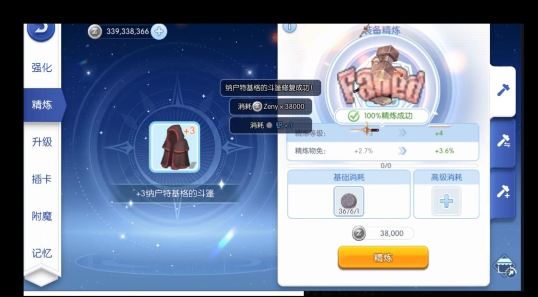 这些消耗随机,所以提醒下,精炼前一定要做好所有准备,不然就是错过机会。