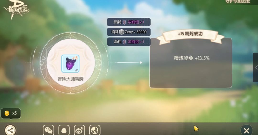 接下来重复精炼+4,不要管红锤,我们获得一批+5↓↓(运气还行,三分之二成功)